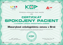 10. 8. 2022 - Tradičně výborné hodnocení spokojenosti pacientů potvrdil ve svých výsledcích Masarykův onkologický ústav, který se navíc dokázal vrátit k předkovidovým hodnotám spokojenosti pacientů. Obhájil nejvyšší rating kvality "A+" a získal certifikát Spokojený pacient ve všech třech kategoriích (zdravotnické zařízení, lékaři, sestry).